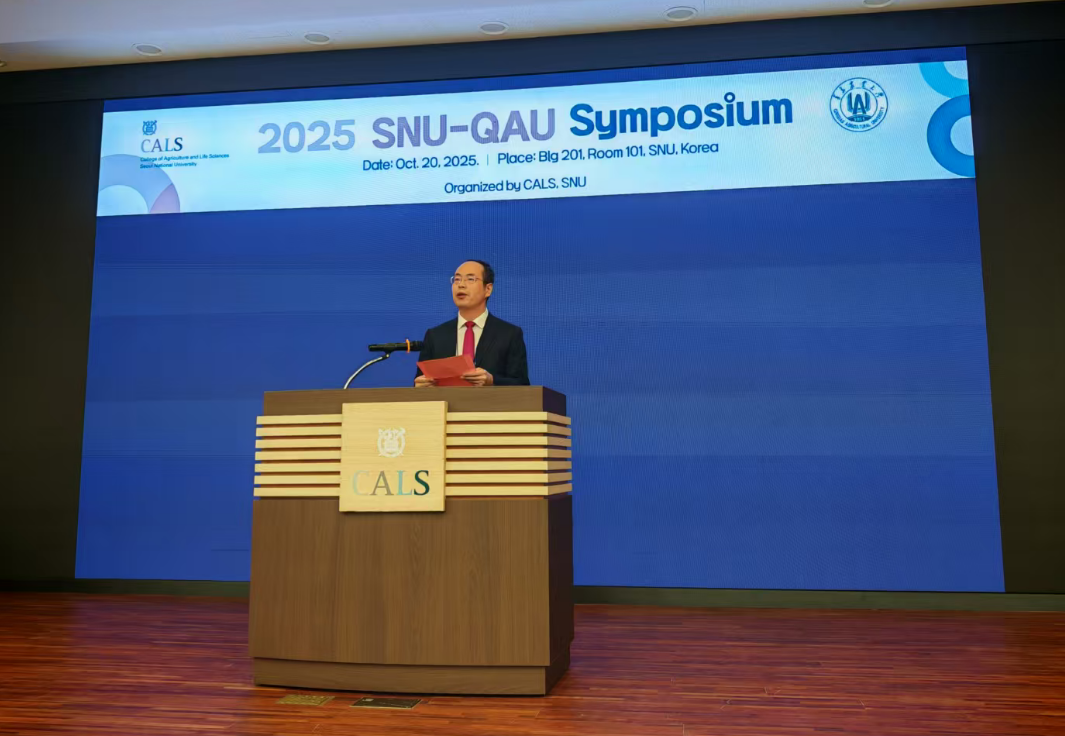 梁文星进行现场致辞,他首先对首尔大学的周密安排与盛情邀请表示衷心感谢。他亲切回顾了两校植物保护团队,特别是围绕植物医学这一前沿领域,在联合研究、技术攻关与师生互访中取得的扎实进展与丰硕成果。他指出,这些立足于学院层面的具体合作,为两校深厚的友谊注入了坚实的专业力量,两校在农业科学与生物技术领域的智慧碰撞,必将为共同应对全球农业挑战开辟新路径。