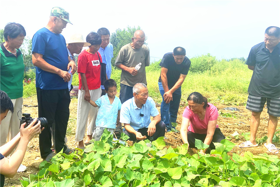 2024年8月22日,刘庆教授在莱西市李家社区指导红薯种植。