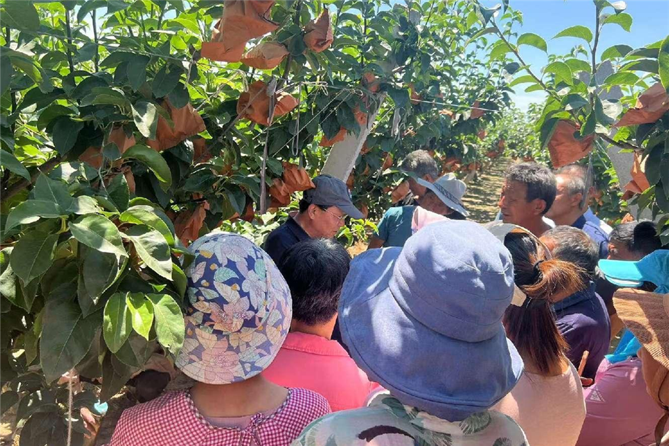 在平度市东杨家庄村维纳斯黄金苹果种植园,服务团屈海泳教授拿起修枝剪,手把手教农户剪枝技巧,从果树四季修剪一直讲到花期人工授粉技巧,从水肥一体化管理讲到病虫害绿色防控,为该村果农量身定制了苹果高产管理方案。现场围在一起的果农们频频点头,认真记录,不时有人拿出手机把屈教授讲的内容录下来,现场气氛专注而热烈。讲解结束后,按照服务团的惯例,屈教授也像其他专家一样,留下个人微信,答应为农户随时答疑解惑,大家争相拿出手机保存屈教授的联系方式。事后,屈教授通过“一对一”精准指导与“一对多”集体解惑的方式,解决农户后续的各种问题。这种“一次培训、后期跟踪服务”的方式,已成为服务团科技助农的常态化操作。