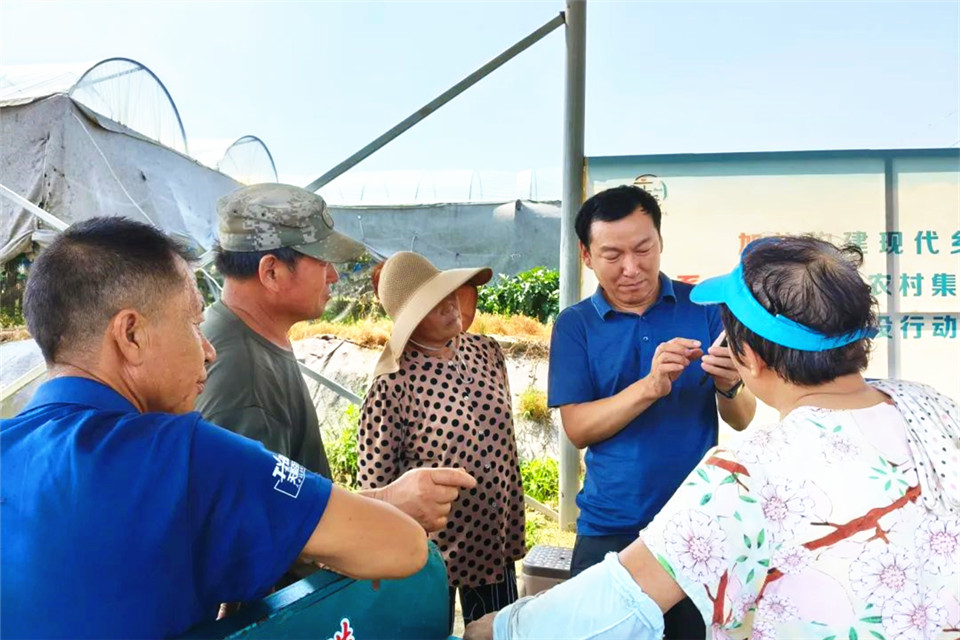2024年8月12日,刘更森教授在平度市店子镇南盛家村授课后给村民留联系方式。