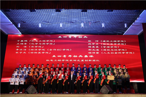 开幕式在“五四情中国梦,新时代争先锋”大学生合唱比赛中拉开帷幕,来自21个学院的21支参赛队伍,以及校青马工程培训班合唱团的“小青马”们,为大家带来了精彩的演出。每支参赛队伍都独具特色,有的以震撼人心的朗诵开场,有的在歌曲间奏配以舞蹈展示,有的创意性地加入武术表演,以青春独有的方式向五四致敬,向青春献礼。开幕式上,为集中展示学校优秀青年学生的精神品格和价值追求,学校团委组织表彰了第十一届“五四青年标兵”和“五四青年标兵集体”。10名青年学子荣获青岛农业大学第十一届“五四青年标兵”荣誉称号;第十五届“挑战杯”全国大学生课外学术科技作品竞赛特等奖获奖团队、机电工程学院“农田之星创新团队”荣获青岛农业大学第十一届“五四青年标兵集体”荣誉称号。