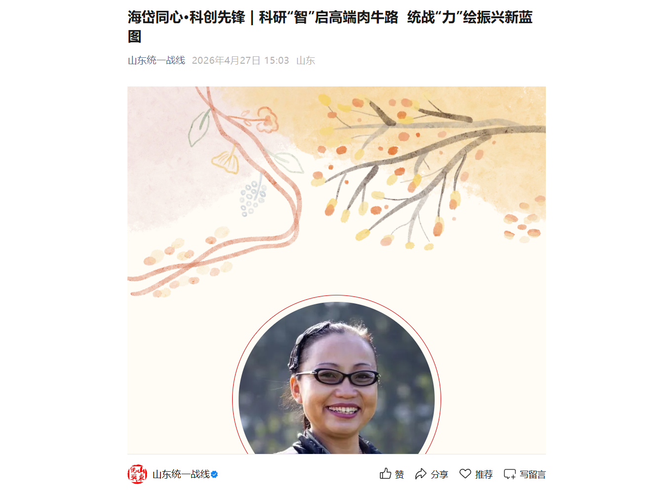 【编者按】4月28日,山东统一战线以《海岱同心·科创先锋 | 科研“智”启高端肉牛路 统战“力”绘振兴新蓝图》为题,报道了青岛农业大学教授、博士生导师董雅娟在中国高端肉牛自主育种的道路上诠释着无党派人士的担当。