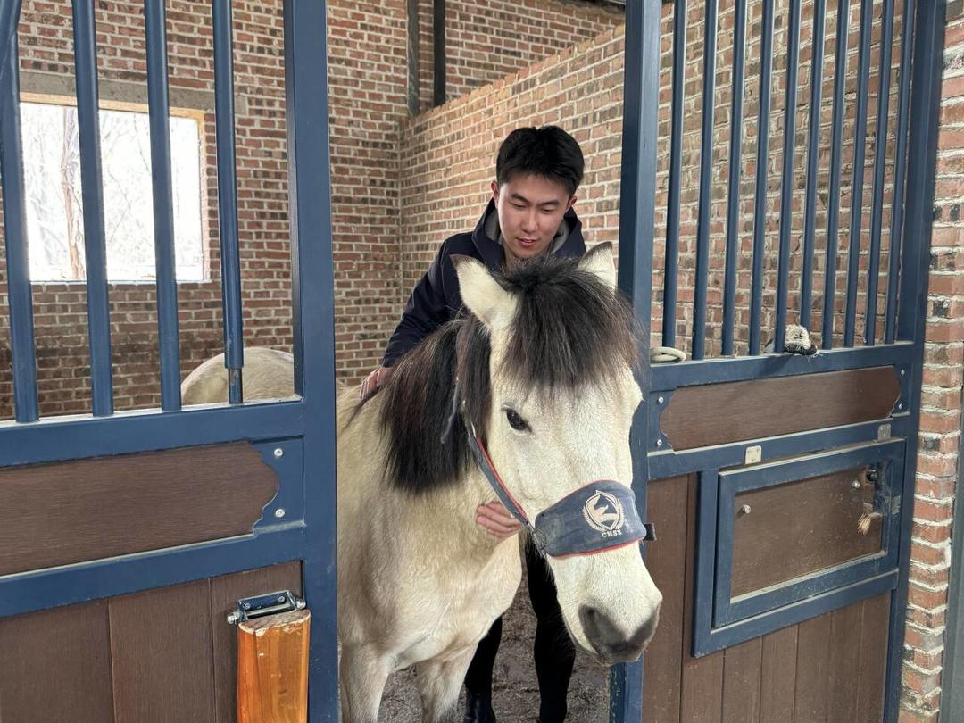 大四学生张锦轩对此深有体会,每一门专业课程都在他实习中发挥了关键作用。“马行为学教我通过观察马的耳朵、眼神、动作,判断它的情绪和压力点;马术基础不只是自己会骑,更是我给学员讲课的底层逻辑;马遗传育种学看起来很远,但在选马、看马的性格和运动潜力时,能帮我做出更专业的判断。”大四学生王荣健同样认为,课堂上的每一门课程,都成为他实习中照料马匹、辅助教学、保障安全的真本事。