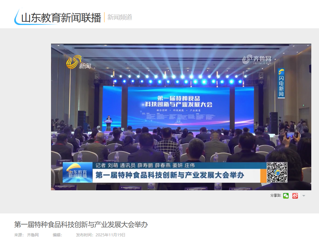 山东教育新闻联播:第一届特种食品科技创新与产业发展大会举办