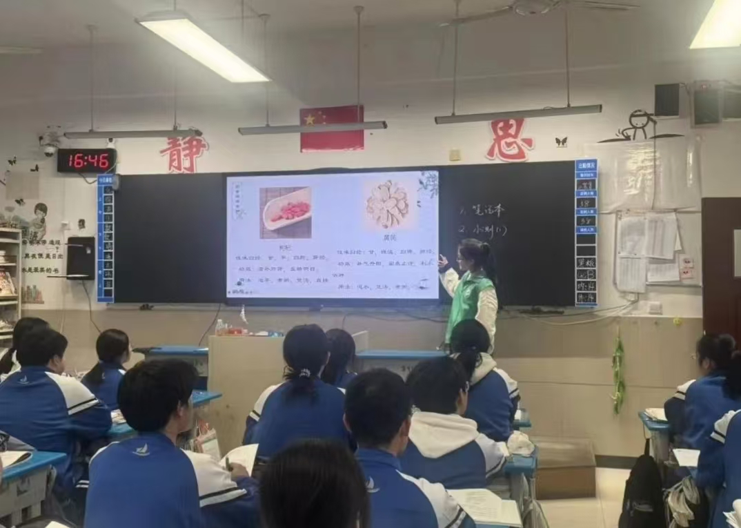 1月16日,“药食润心,童行健康”实践团以药食同源为主题,走进烟台市龙港街道海岱中校开展科普宣讲。团队成员结合专业知识,用生动易懂的方式,向中学生介绍药食同源的基本理念、常见药食同源食材及其营养价值,讲解日常饮食与健康养生的关系。通过案例分享、互动问答等形式,将食品科学知识与生活实际相结合,帮助同学们树立科学健康的饮食观念,感受中华传统养生文化的魅力。