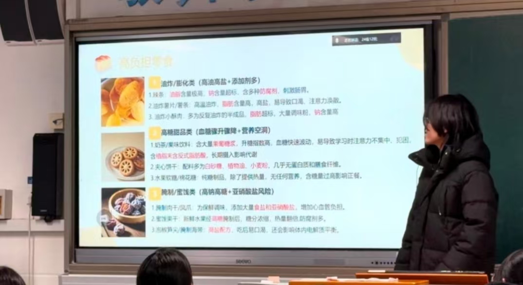 1月16日-19日,“七星聚力,健康食育”实践团赴山东省烟台第一中学开展社会实践,活动覆盖100余人。团队采用科普演讲、互动实验等形式,开展健康零食科普分享与过期食品安全宣教,拆解高负担零食危害,将食品专业知识与高中生饮食需求结合,提升学生科学饮食与食品安全观念。