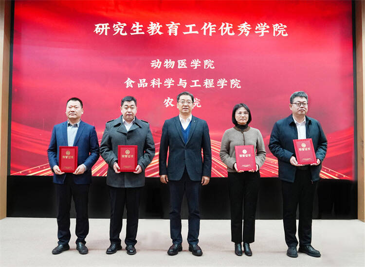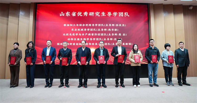 会议现场发布了《青岛农业大学研究生教育高质量发展行动方案(2026-2030)》。会议对近五年来在研究生教育教学工作中取得突出成绩的集体和先进个人进行了表彰。研究生教育工作优秀学院,国家级学科竞赛和省级创新成果指导教师,省级优秀研究生导师和导学团队,省级优秀硕士论文指导教师,省级研究生教育教学资源项目和成果主持人,优秀科技小院首席专家等分别上台领奖,校领导为获奖代表颁发证书。