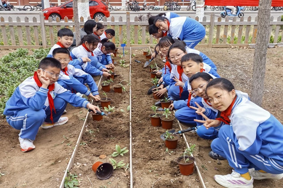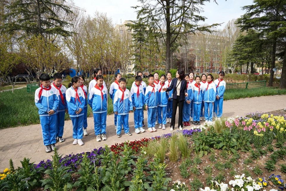 为推进大中小学思政一体化建设,4月8日下午,青岛农业大学园林与林学院邀请城阳区靖城路小学师生走进学院群芳圃,与学院师生一起开展了一场以“大手拉小手,共育生态梦”为主题的研学实践活动。本次活动将专业知识与思想政治教育深度融合,通过沉浸式体验,为小学生们上了一堂生动的生态文明“大思政课”。