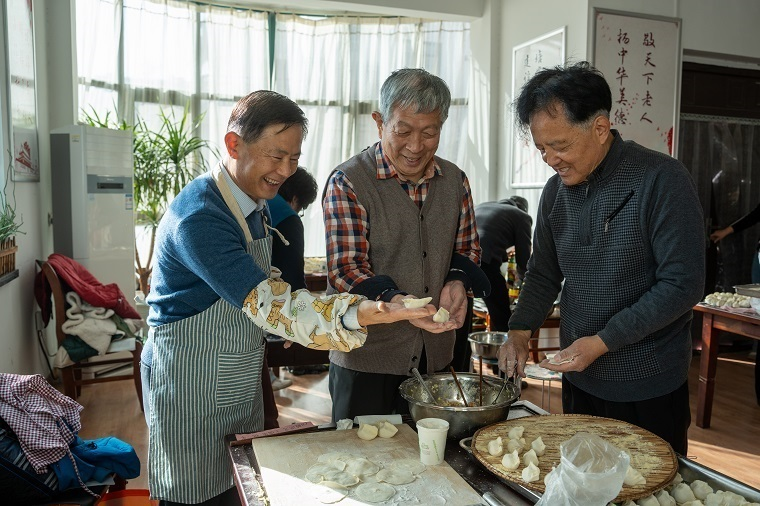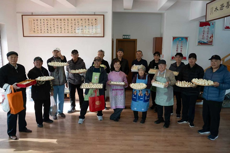 比赛现场暖意融融,工作人员和“青水杉志愿者”将面粉、肉馅、白菜、面板等材料整齐地摆放在案桌上,透着满满的贴心。随着比赛正式开始,老同志们迅速投入“战斗”。他们各展所长,手法娴熟,配合默契。一张张面皮包裹着鲜香的馅料,一颗颗水饺承载着相聚的喜悦。经过紧张而愉快的角逐,一盘盘饱满匀称、摆放整齐的饺子呈现在评委面前。评委们从“速度、数量、美观度”等方面进行综合评判,最终评选出综合团体奖。