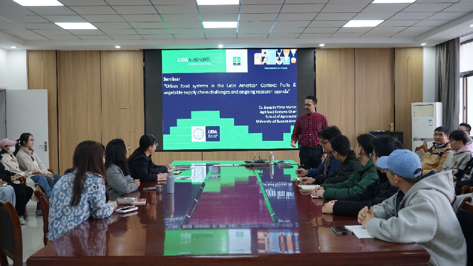 11月14日,青岛农业大学经济管理学院(合作社学院)邀请布宜诺斯艾利斯大学农学院教授Joaquín Pérez Martín,于文经楼A420作主题为“Urban food systems in the Latin American Context: fruits & vegetable supply chain challenges and ongoing research agenda”的学术报告。学院党委书记张德锋及相关负责人、学院部分师生参加。