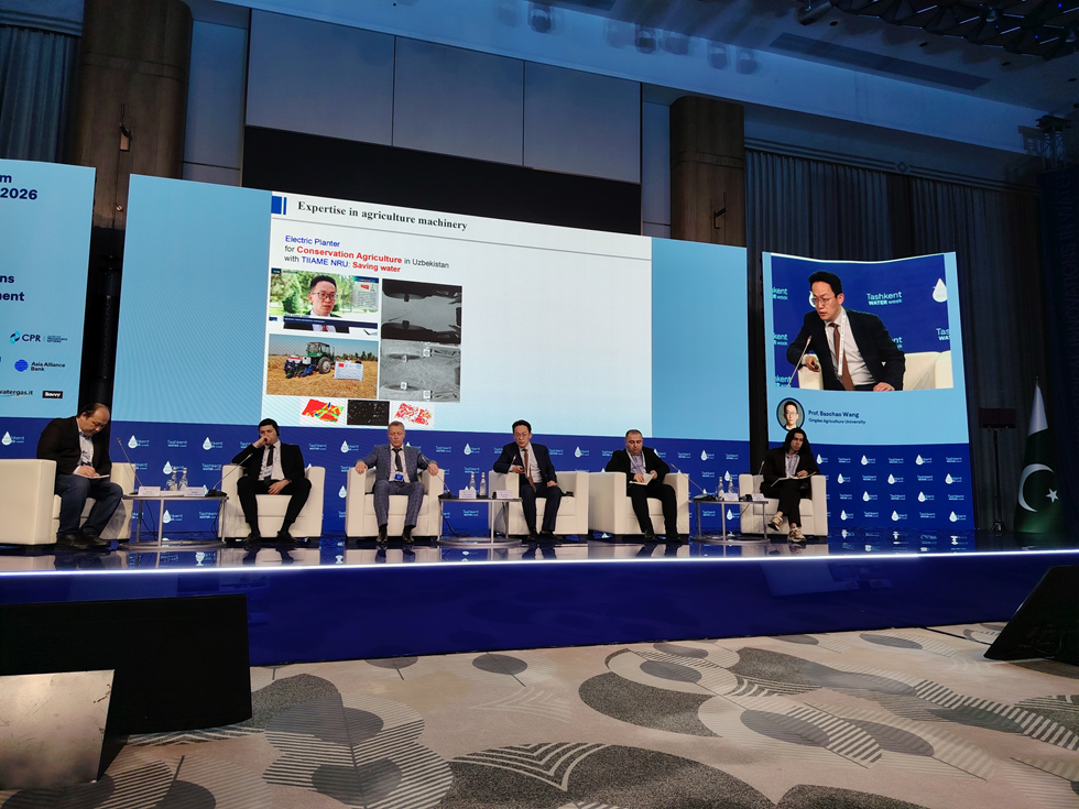 近日,青岛农业大学机电工程学院尚书旗教授、王宝超教授参加“塔什干水周(Tashkent Water Week 2026)国际论坛”,并出席相关专题论坛及学术交流环节。论坛期间,尚书旗教授接受了乌兹别克斯坦国家新闻频道“Oʻzbekiston 24”电视台等媒体采访,就中国在保护性耕作与智能农机领域的研究进展进行了介绍。