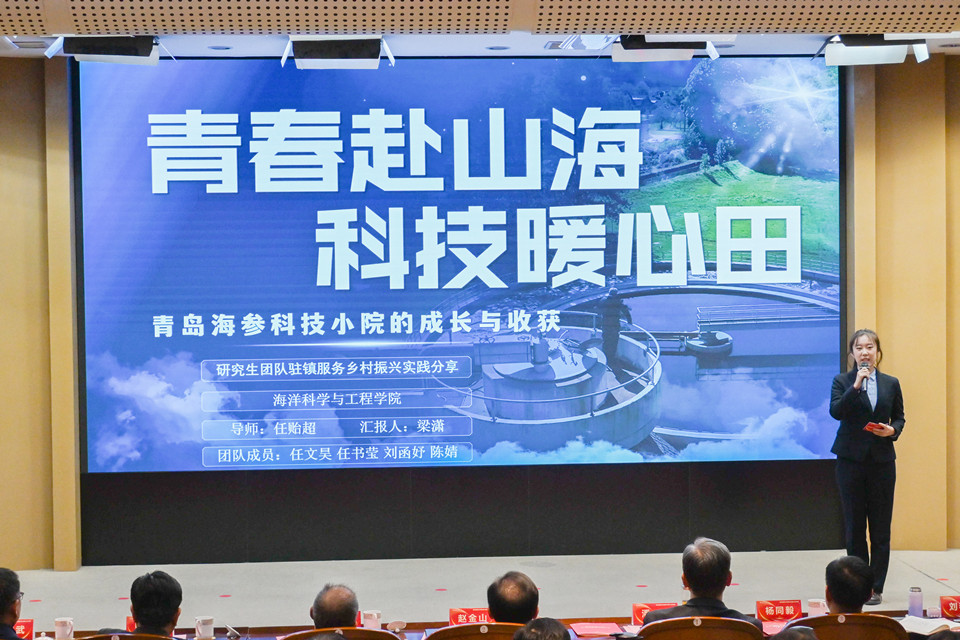 会议还举行了研究生创新成果展示环节。来自植物医学学院、动物医学院、海洋科学与工程学院、园林与林学院等四个学院的研究生团队,分别围绕学术攻坚与前沿突破、实践创新与志愿服务、科技兴农与服务地方、专业实践与生态建设等方面分享学习收获和获奖感受。