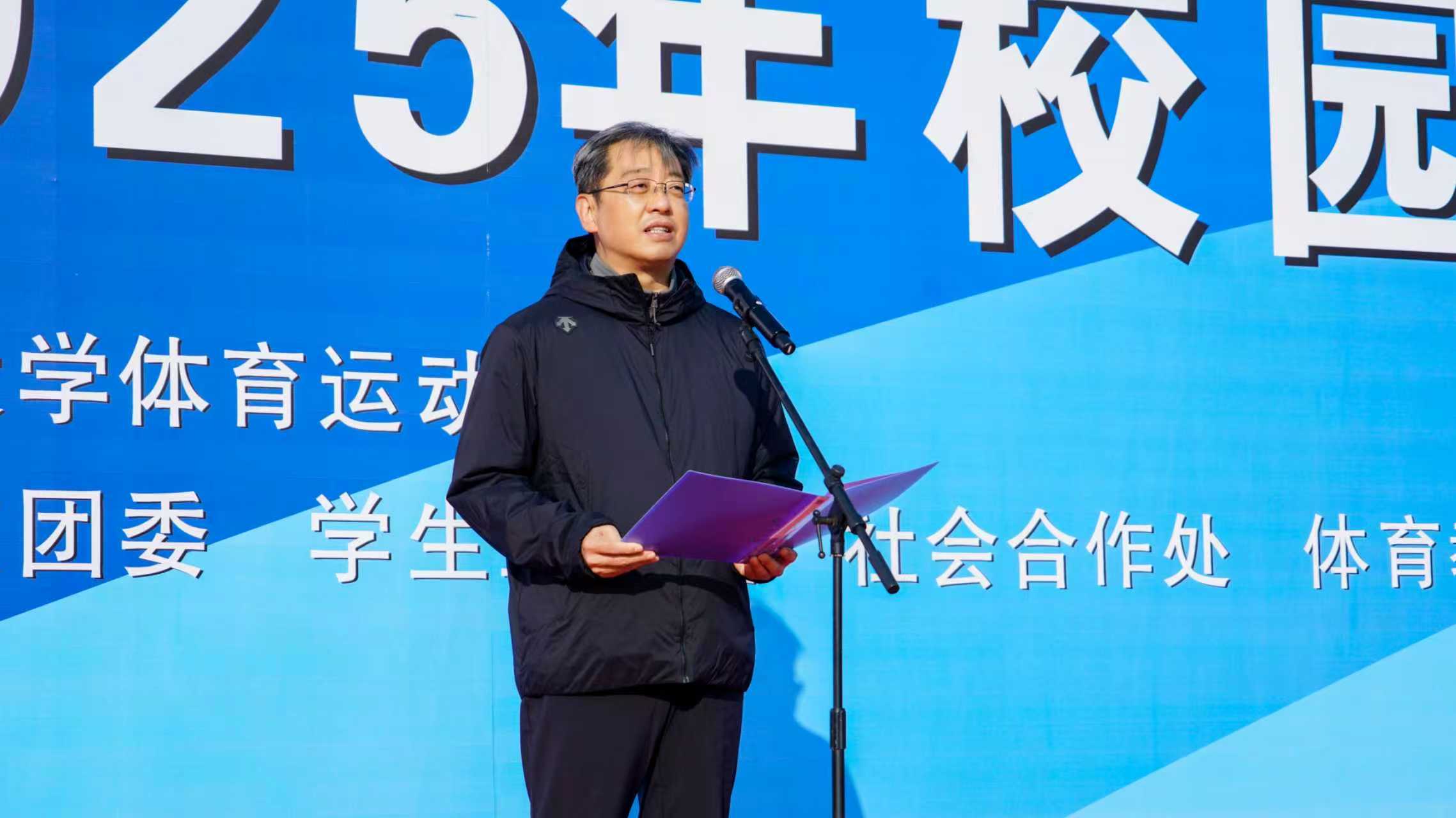 潘军在讲话中指出,九十年前的“一二・九”运动凝聚爱国情怀、奋斗精神。体育承载国家强盛、民族振兴是梦想,不仅是锻炼身体、增强体魄的基本途径,更是锤炼意志、塑造人格的重要方式。学校始终将体育摆在人才培养重要位置,近年来不断完善课程体系、升级设施场地、丰富体育活动,为广大师生搭建了广阔运动平台。本次以迷你马拉松形式深化以体育人,既是一场体能与耐力的比拼,更是一次青春与信念的接力。潘军希望参赛师生和校友在奔跑中感受运动的快乐,在坚持中体会成长的意义,让强健体魄成为追逐梦想的基石。