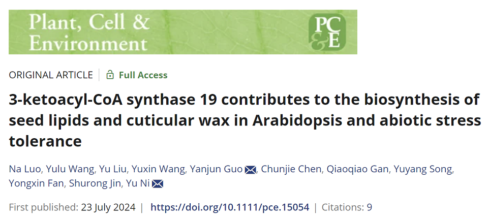 (Plant, Cell & Environment, 2024, DOI: 10.1111/pce.15054;中国科学院一区Top,IF=6.3)