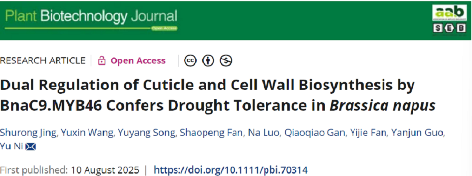 近年来,气候变化以及盐碱、干旱、低温等非生物逆境严重制约了我国冬季油料作物——油菜的稳产高产。提升油菜抗逆性,不仅关系国家粮油安全,也对盐碱地利用与乡村振兴意义重大。青岛农业大学农学院倪郁教授课题组长期致力于“油菜耐旱寒、耐盐碱”的分子调控研究,近期围绕植物外层防护体系——角质层与细胞壁的协同调控取得系列原创性成果,连续发表于 Plant, Cell & Environment、Plant Biotechnology Journal 和 New Phytologist 等国际植物学顶级期刊。