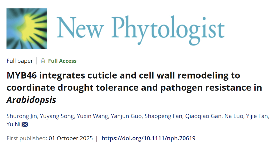 (New Phytologist, 2025, DOI: 10.1111/nph.70619, 中国科学院一区Top,IF=8.1)