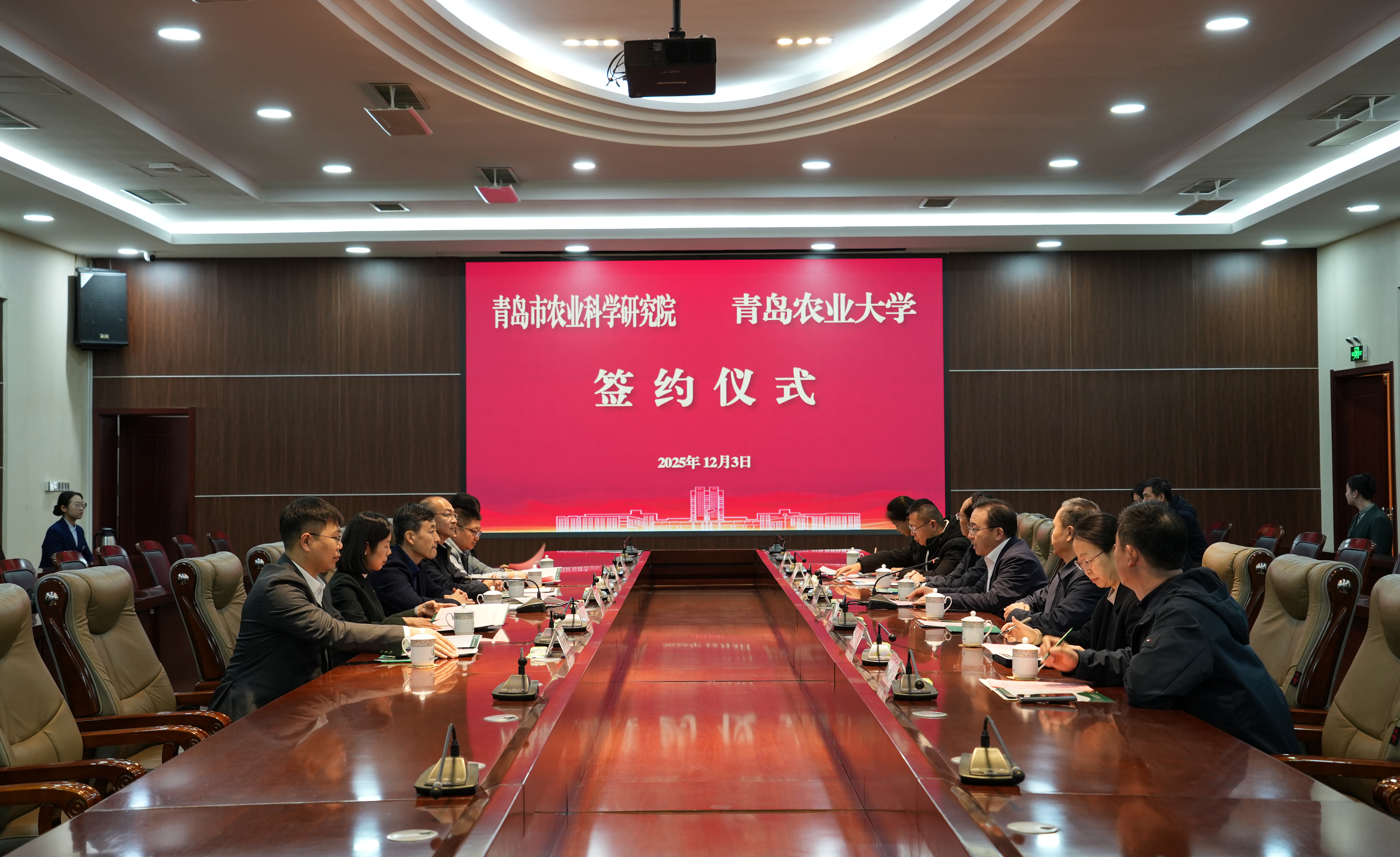 12月3日下午,青岛农业大学与青岛市农业科学研究院深化合作签约仪式在校学术会馆举行。校党委副书记、校长赵金山,青岛市农业农村局党组成员、市农科院党委书记、理事长宋晓,青岛市农科院院长林涛出席签约仪式,校党委委员、副校长郭尚敬,校党委委员、统战部部长赵龙刚出席仪式。