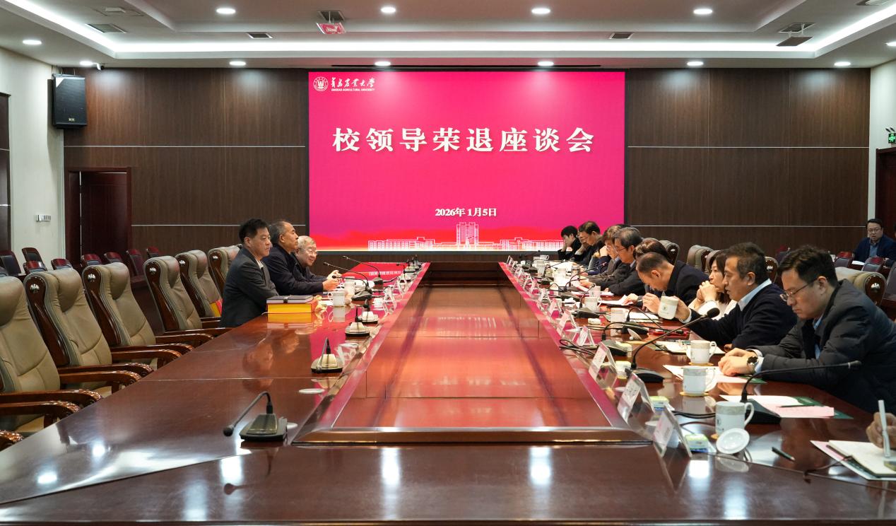 1月5日,学校为2025年荣退的三位校领导原永兵、牟少岩、杨同毅举办座谈会,共话青农情谊,展望美好未来。校党委书记潘军出席座谈会并讲话,全体在校校领导参加,会议由校党委副书记刘春霞主持。
