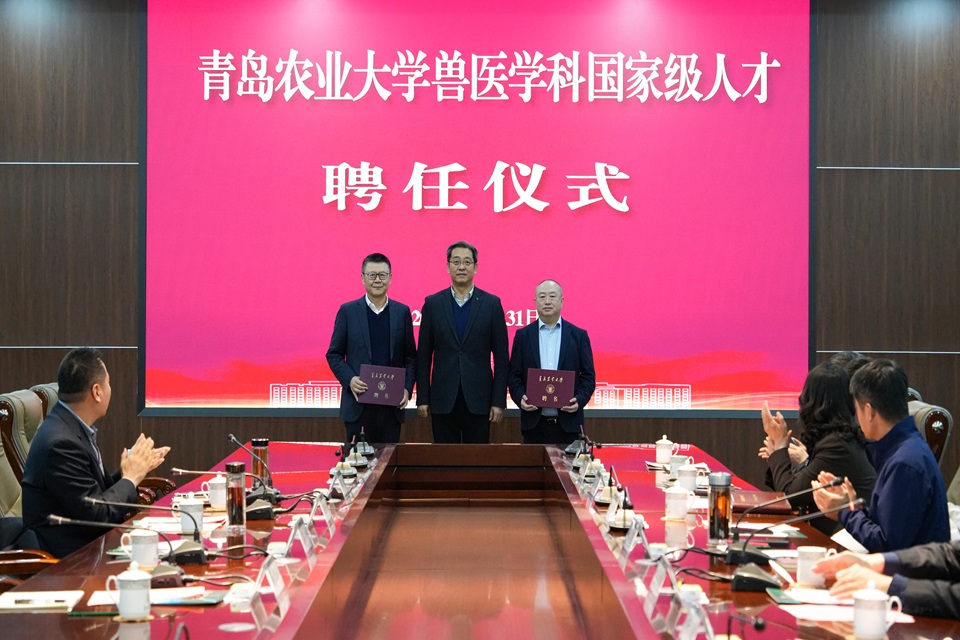 潘军表示,人才是学校发展的第一资源。当前国家正加快推进教育科技人才一体化发展,学校深入实施人才强校战略,始终把人才作为学科建设的核心支撑、人才培养和科技创新的关键引擎,亟需高层次人才引领学科建设。他指出,两位专家的加盟是对学校兽医学科发展的精准赋能,相信在两位专家的引领支持下,兽医学科能够更好聚焦学科前沿与国家战略需求,整合资源、凝练方向,加快在特色领域形成优势。他希望两位专家当好学科引领者、创新开拓者和人才培育者,推动兽医学科向更高水平迈进。