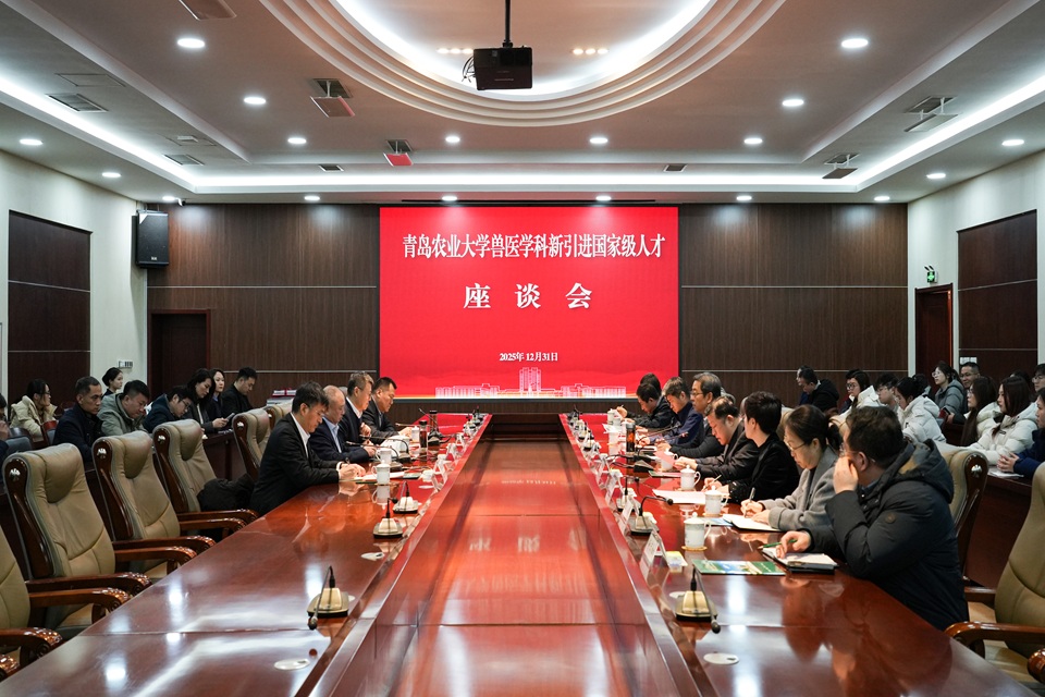 12月31日,青岛农业大学举行兽医学科新引进国家级人才座谈会。学校新引进人才、国务院政府特殊津贴专家冯力教授和国家级领军人才李朝阳教授,校党委书记潘军出席座谈会并讲话。会议由校党委委员、副校长王永健主持。