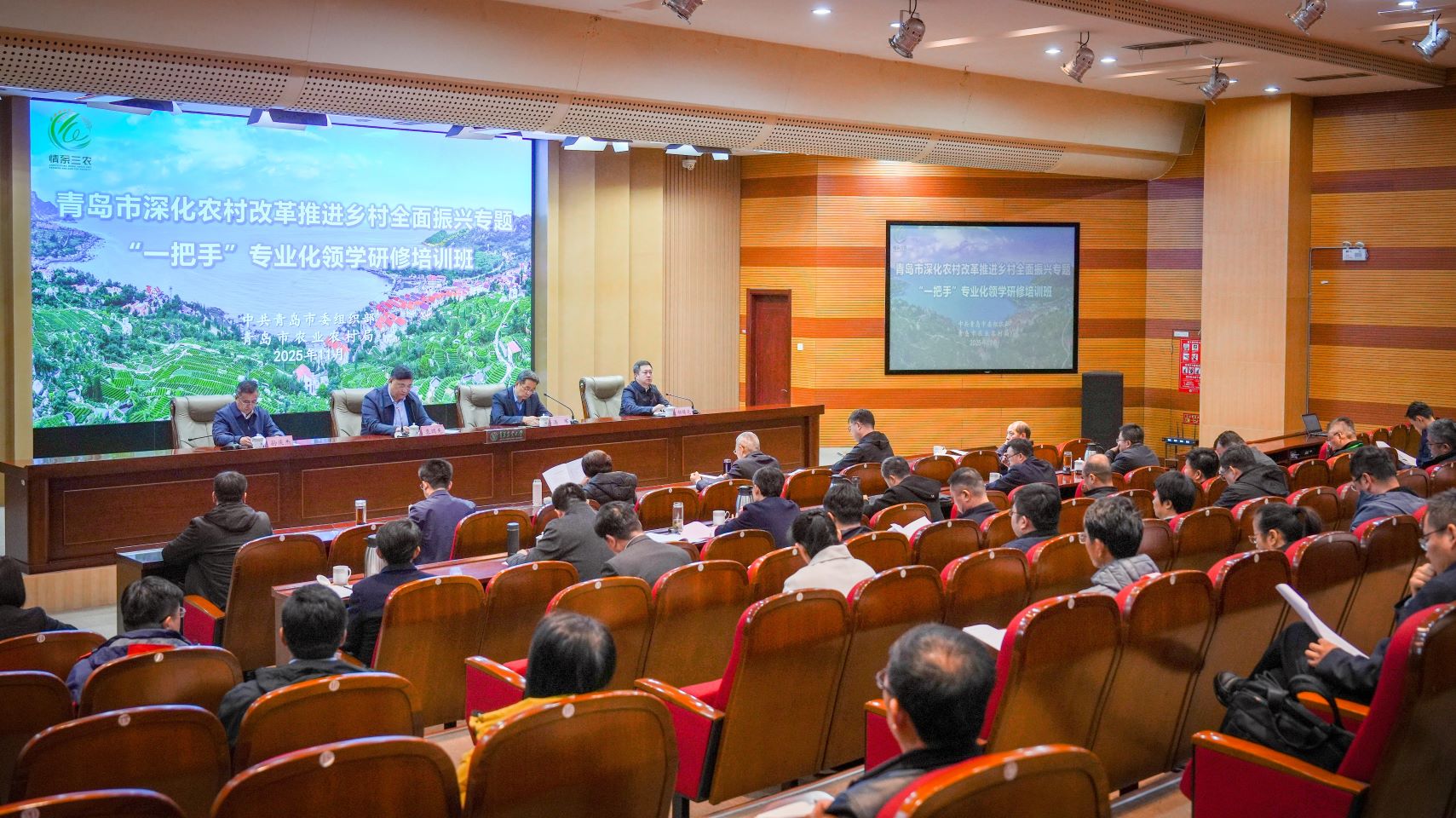 为深入学习贯彻党的二十届四中全会精神,落实学校服务青岛乡村全面振兴行动方案,进一步深化校地协同赋能乡村振兴,11月19日上午,由青岛市委组织部、青岛市农业农村局主办,青岛农业大学承办的青岛市深化农村改革推进乡村全面振兴专题“一把手”专业化领学研修班在青岛农业大学正式开班。校党委书记潘军,青岛市委农办主任、市农业农村局党组书记、局长袁瑞先出席会议并致辞,校党委委员、副校长孙庆杰出席仪式,青岛市农业农村局党组成员、副局长郝曙光主持会议。