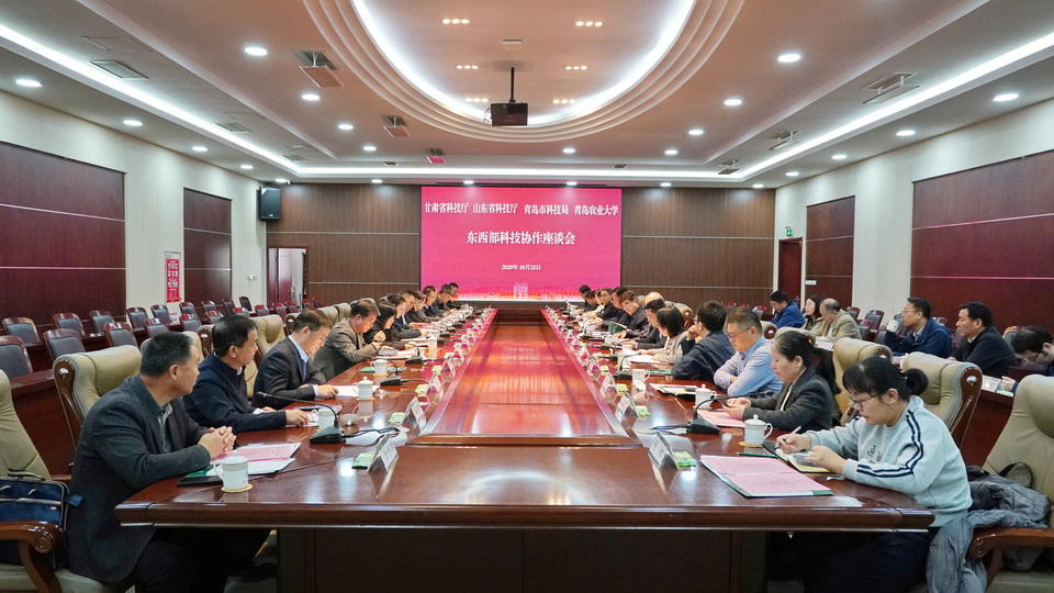 10月22日,甘肃省科技厅党组书记、厅长闵苹来校调研东西部科技协作定点帮扶工作,甘肃省科技厅党组成员、副厅长牛振明,甘肃省农业科学院党委委员、副院长李允陪同调研。山东省科技厅二级巡视员王宝立,青岛市科技局党组书记、局长李天传陪同调研,校党委副书记田义轲,校党委委员、副校长张玉梅出席座谈会。