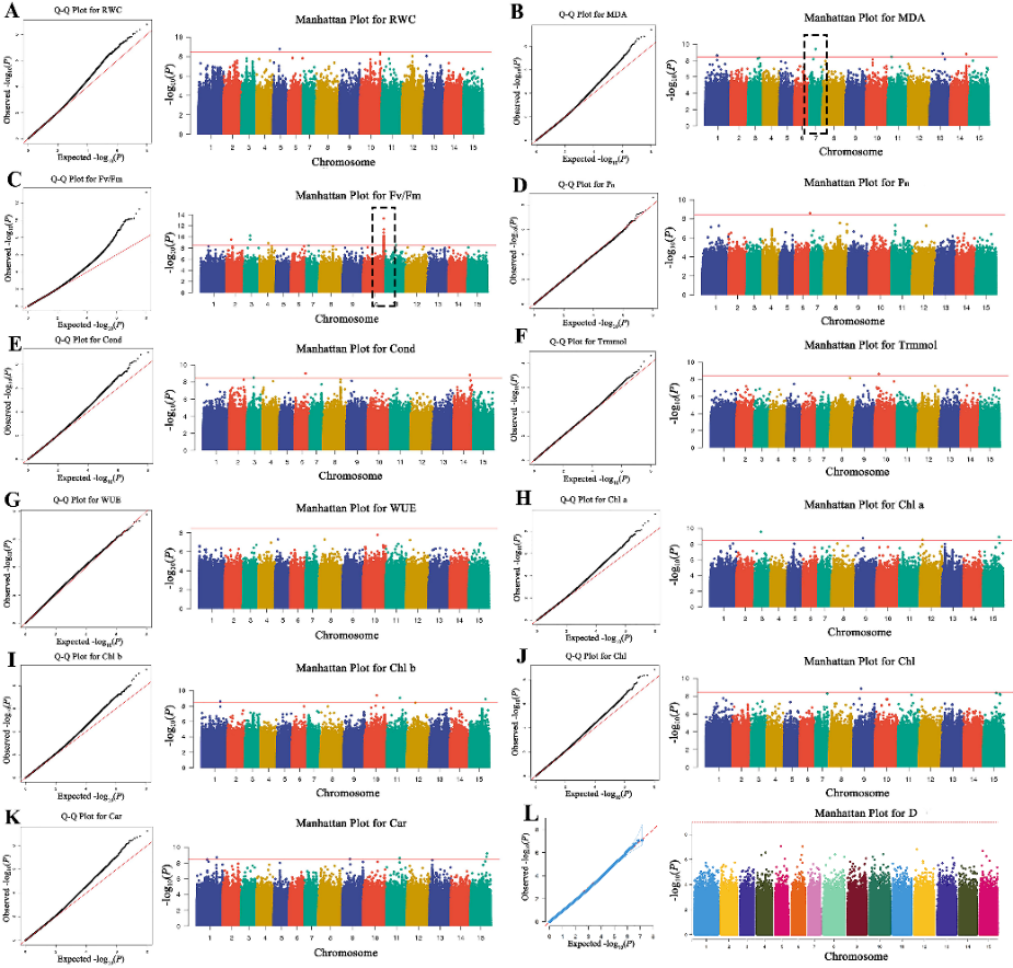 图1 茶树抗旱性状的全基因组关联分析