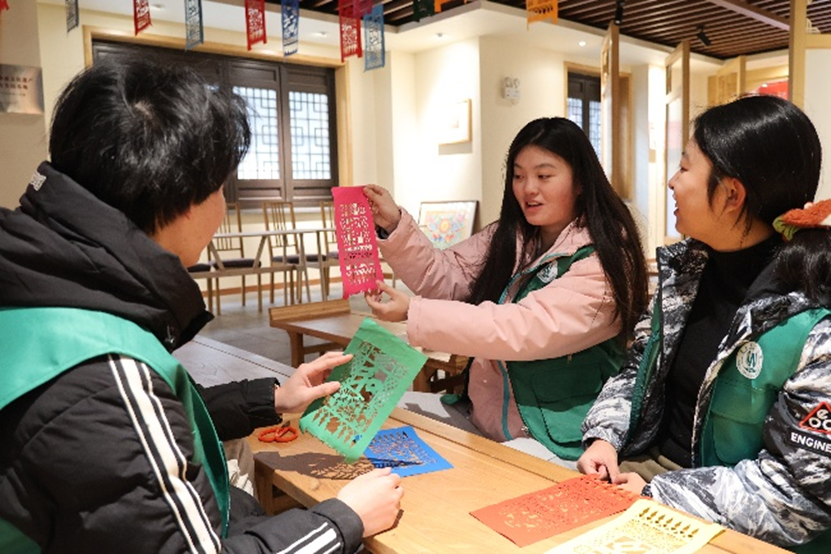 为推动非遗文化活态传承,各实践团队走进非遗场馆、对接传承人,以青年视角挖掘非遗价值。机电工程学院“匠心传文脉,青春赴麟乡”实践团走进永丰塔、巨野县博物馆、书画院等地,开展主题实践活动。团队以文化溯源、非遗调研、科技赋能、文化宣讲为核心,沉浸式探寻麒麟文化与工笔牡丹画非遗魅力。团队还结合机电专业特色,探索科技赋能非遗新路径,将专业所学与文化传承、乡村振兴相结合。建筑工程学院“青承匠心·莒笺传韵”实践团赴日照莒县,走进剪纸物语非遗体验馆,与非遗传承人共同研习过门笺挖补雕刻技艺,沉浸式体验制作全流程,深挖非遗文化内涵。通过短视频传播实践成果,助力莒笺非遗融入乡村文化建设。生命科学学院“山海藏非遗,青农铸匠心”非遗传承实践团走进鲁地非遗传承馆,专访非遗传承人,研习壮馍制作、沂蒙香囊技艺,并记录传承历程,在调研宣传深挖非遗当代价值中为乡村非遗活态传承提供实践支撑。艺术学院“‘淄’力同心,‘味’美乡村”实践团赴淄博周村古商城,系统梳理周村烧饼历史与技艺,亲身参与烧饼制作全流程,与古城工作人员、非遗传承者、消费者等不同群体进行访谈并形成调研结论,助力非遗美食赋能乡村产业发展。