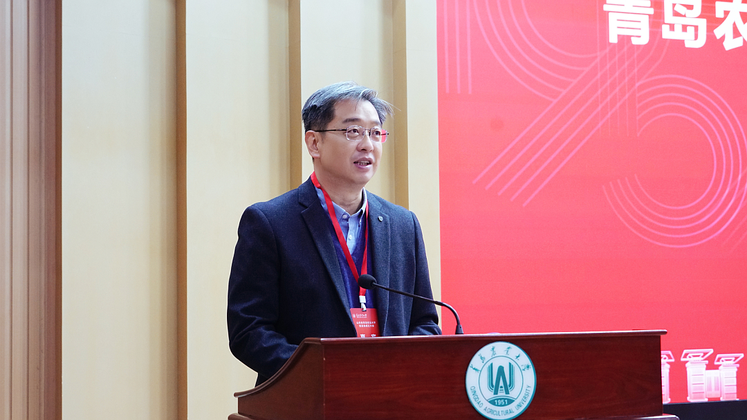 校党委书记潘军致辞,代表学校向各位领导和嘉宾表示热烈欢迎,向从五湖四海回到母校的校友们致以诚挚的问候,向长期以来关心支持学校发展的各级领导和社会各界朋友表示衷心感谢。潘军指出,校友是母校最珍贵的财富和最闪亮的名片。青岛农业大学自建校以来培养了20余万名优秀毕业生,大家在各个领域书写多彩华章,为母校赢得广泛赞誉,成为母校发展最坚实、最可信赖的力量,母校也永远是广大校友的精神家园。潘军强调,做好校友工作是学校的重要职责使命。经过多年努力,学校关心校友、校友反哺学校,相互支持、共赢发展的良好局面已经形成。此次山东省青岛农业大学校友会正式成立,不仅为深化校友工作、提升服务质效提供了重要载体,更为全体莱农人、青农人搭建了凝聚感情、赋能发展的全新平台。潘军表示,希望校友会成为全体校友与母校情感联结的“连心桥”,成为母校与校友、校友与校友之间协同发展的“加油站”和强农兴农的“大舞台”,助力校友与母校携手共进,共同书写无愧时代的崭新篇章。