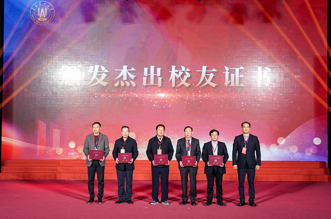 当天上午,山东省青岛农业大学校友会闭幕式在学校演播大厅举行。1974级农学专业校友李登海,1977级兽医专业校友张效成、黄炳亮,1977级农业机械化校友方润刚、孙俊成,1978级农学专业校友刘铁斌、刘鲁民等7位校友被推选为杰出校友,校党委书记潘军为到会杰出校友颁发证书。