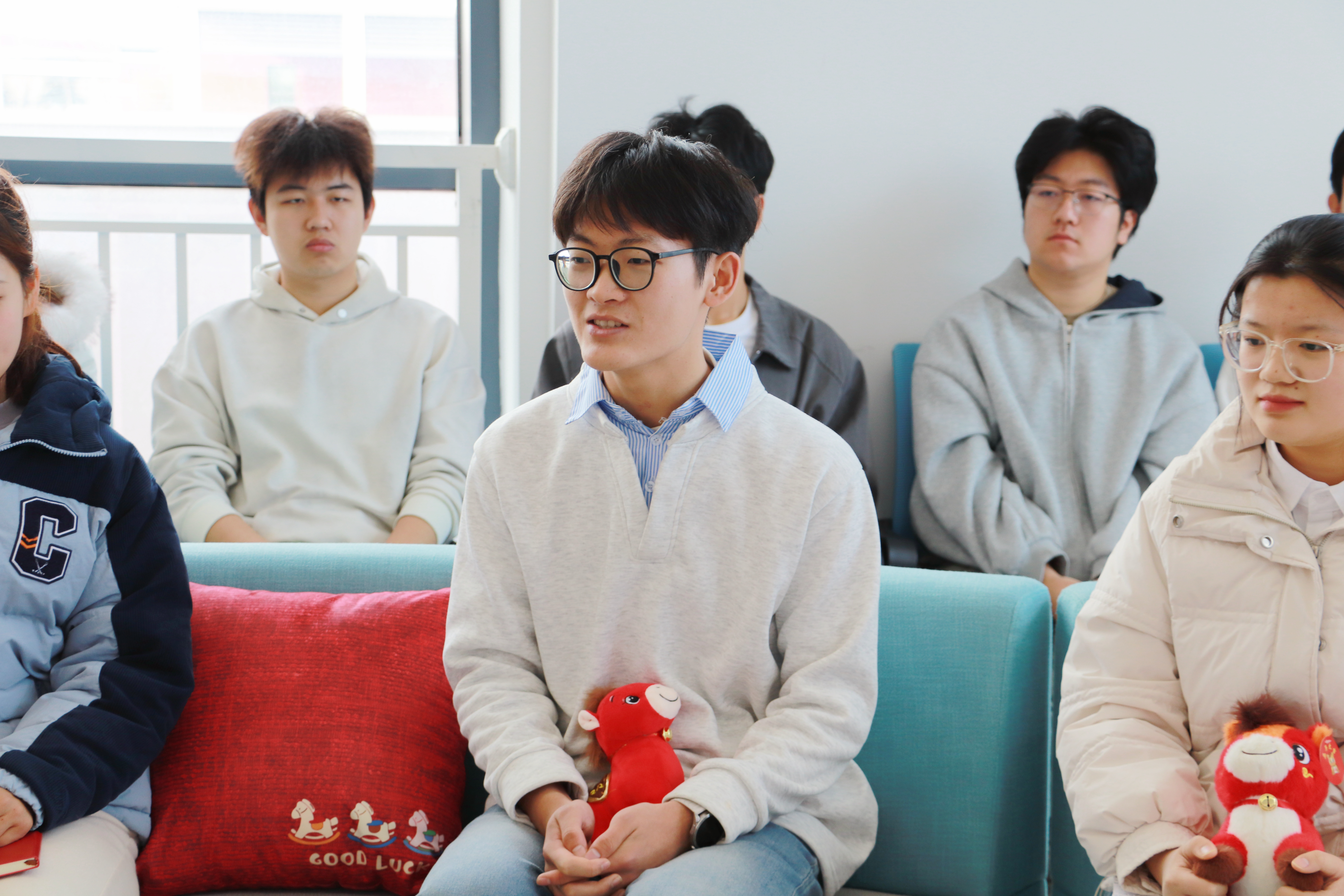 元旦到来之际,12月31日,校党委书记潘军与优秀学生代表和2025级新生代表在平度校区图书馆康成书院座谈交流,以“遇见·未来——共话大学新征程”为题,共话成长,欢庆元旦。校党委委员、宣传部部长王峰参加座谈,40名学生代表参加活动、分享交流。