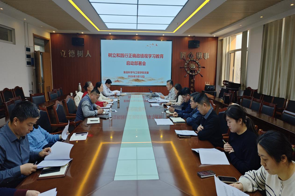 3月12日,食品科学与工程学院召开树立和践行正确政绩观学习教育启动部署会议。学院党委书记车广杰主持会议并就学院开展树立和践行正确政绩观学习教育作出全面部署,全体党政班子成员、支部书记和辅导员参加。