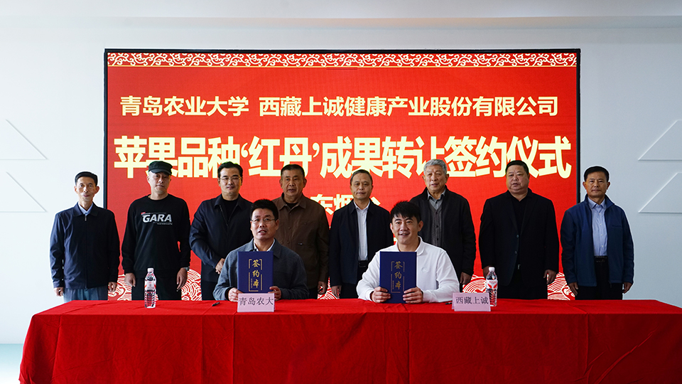 11月5日,青岛农业大学红肉苹果新品种“红丹”以200万元转让西藏上诚健康产业股份有限公司。签约仪式在烟台大山果业开发有限公司会议室举行。校党委委员、副校长郭尚敬出席仪式并代表学校致辞。烟台市农业农村局副局长吴晨光,烟台大山果业开发有限公司董事长林成欣,西藏上诚健康产业股份有限公司总经理林传清,苹果育种团队专家戴洪义教授出席仪式。