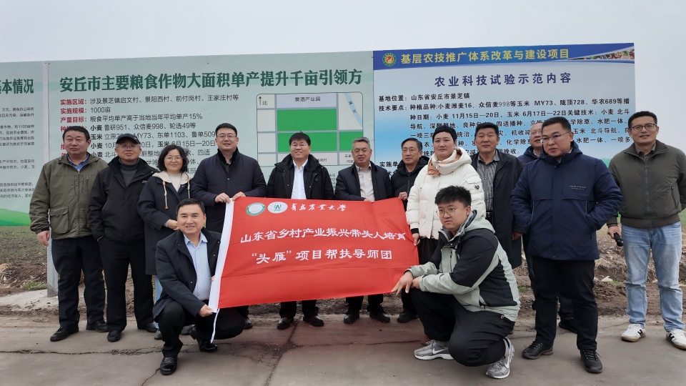 近日,继续教育学院院长潘军率学院培训工作负责人员及学校小麦育种、土壤肥料、食品加工、农业传播相关专家赴潍坊、滨州两地,举行“头雁”项目座谈会暨帮扶导师聘任仪式,并深入学员基地开展现场跟踪技术指导。潍坊市、滨州市农业农村相关部门负责人及两地遴选推荐的帮扶导师团成员、学员代表分别参加了相关活动。