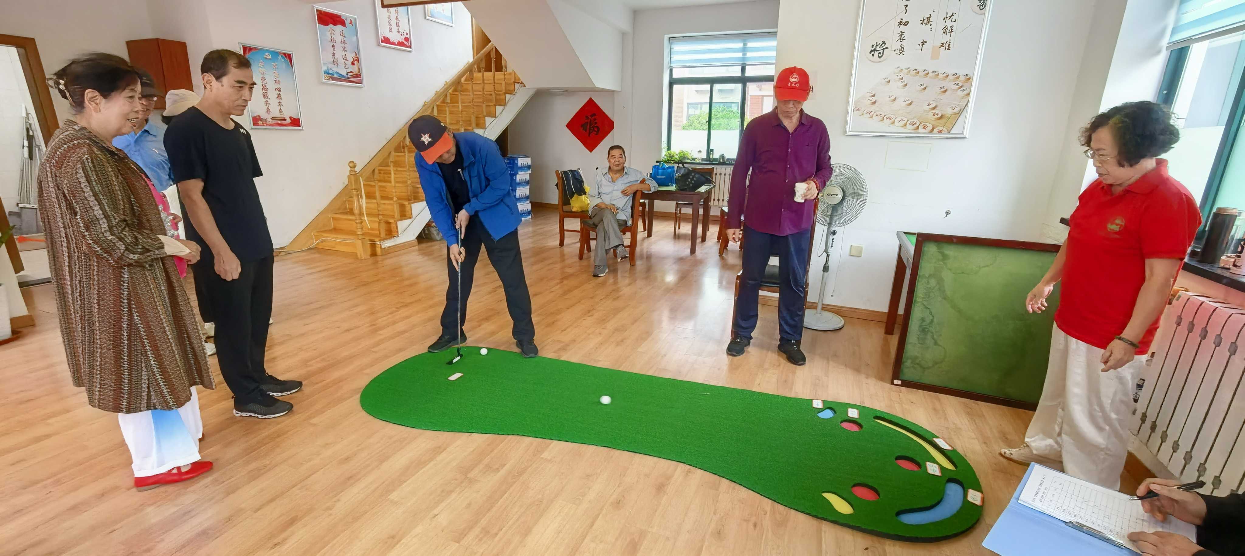 本次趣味运动会根据老同志的年龄特点,设置了“趣味高尔夫球”“飞镖投准”等六个单人项目和“托球跑”“夹乒乓球”等三个团体项目,强度适中,集趣味性、协作性和安全性于一体,深受老教师的喜爱。运动会在歌舞、太极等精彩的节目表演中拉开序幕,比赛现场,老教师们精神矍铄,热情高涨。“趣味高尔夫球”赛区,大家屏气凝神,瞄准目标击球;“套圈”“飞镖投准”等项目,老同志们认真调整姿势、专注投掷。赛场内外不时响起阵阵加油声与喝彩声。