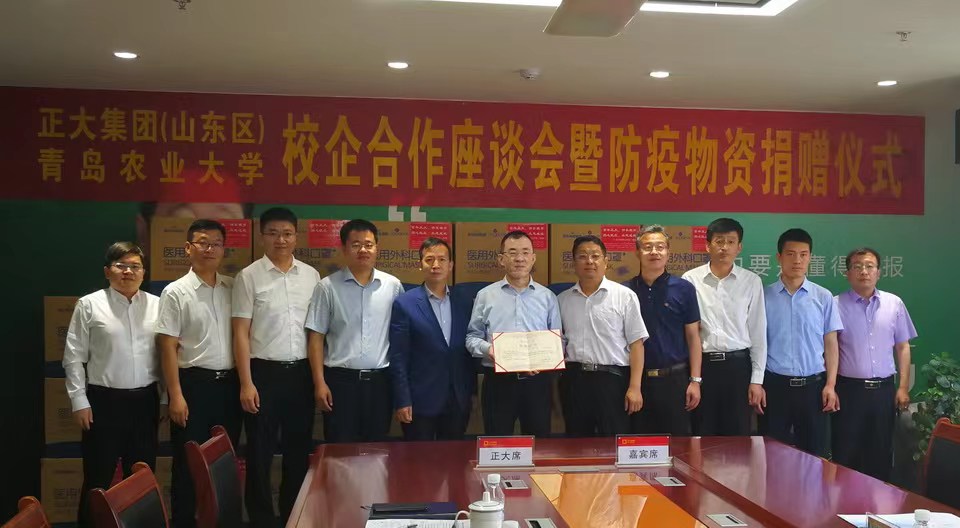 会后,正大集团山东区向青岛农业大学捐赠防疫口罩6万只。本次座谈会,为校企双方从科研支持、人才培养、就业实践基地建设、讲师资源共享等方面深度融合与加深合作奠定了良好基础。