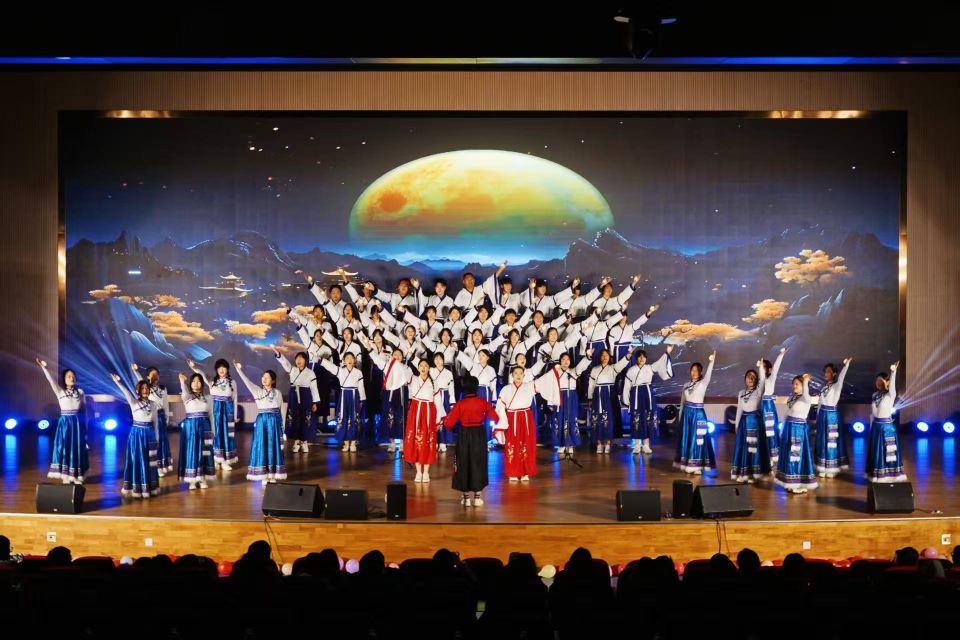 晚会分为“心耕沃野,文启新章”“志耘芳华,潮涌新程”“华章赓续,筑梦新篇”三个篇章。同学们用歌曲、诵读、舞蹈、话剧等不同表演形式带来了一场精彩的文艺汇演。第十四届大学生科技文化艺术节合唱比赛一等奖作品《玉盘》,以古典诗词为魂、民族旋律为骨,上演了一场跨越千年的“问月”之旅。“中华优秀传统文化节”之家国情怀主题诵读大赛一等奖作品《青春中国》,用滚烫的诗行阐释青年之志;“学宪法 讲宪法”法治情景剧比赛一等奖作品《烟火寻常处,宪法有回响》,以剧普法,将宪法融入寻常烟火,让法治光芒照亮千家万户。最后,晚会在校歌的合唱声中圆满落下帷幕。