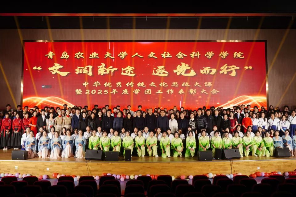 12月17日,青岛农业大学人文社会科学学院举行“文润新途,逐光而行”中华优秀传统文化思政大课暨2025年度学团工作表彰大会。副校长孟晓军、学生工作处处长杨凯、平度校区党委副书记、管理办公室主任王国辉、农业传播与教育研究院(齐民书院)院长周维维、校团委书记刘琨出席活动,学院党政班子成员、师生代表参加。
