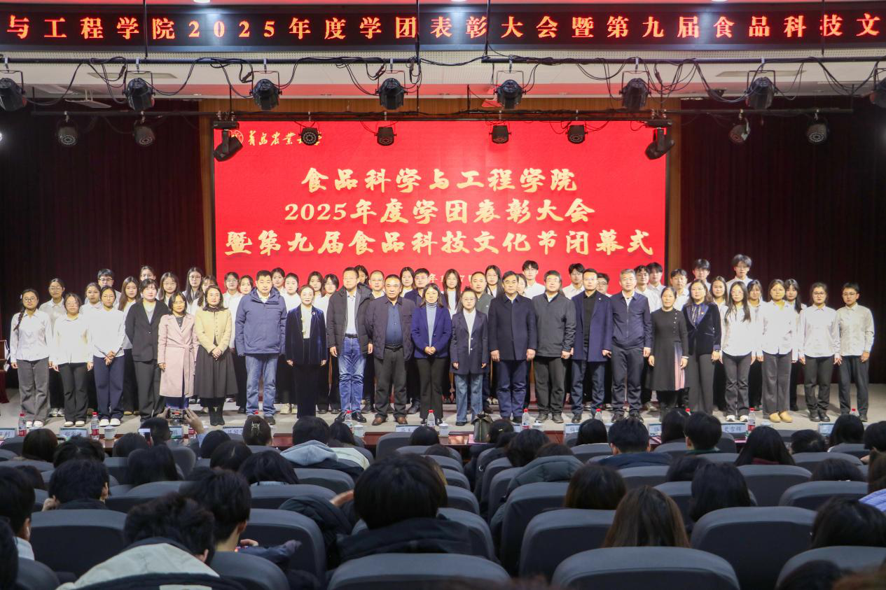 为总结2025年度学团工作成果,展示食品科技文化节育人成效,表彰先进典型并凝聚校企协同育人合力,1月7日,食品科学与工程学院在城阳校区学术会馆第二报告厅举行2025年度学团表彰大会暨第九届食品科技文化节闭幕式。