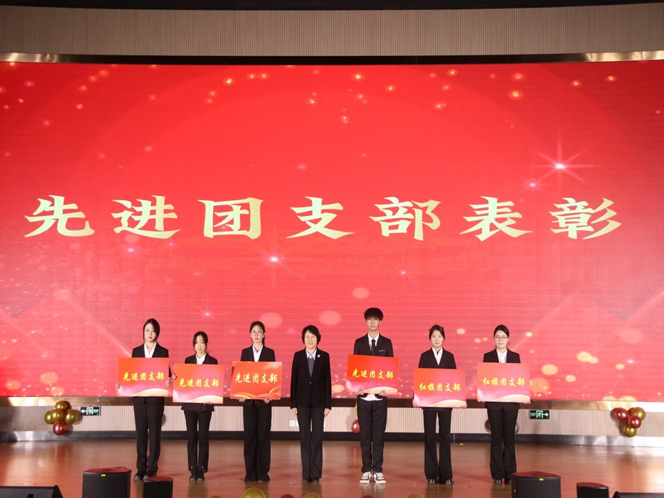 表彰典礼上,颁奖嘉宾向受表彰的集体和个人颁发荣誉证书,勉励同学们砥砺前行。