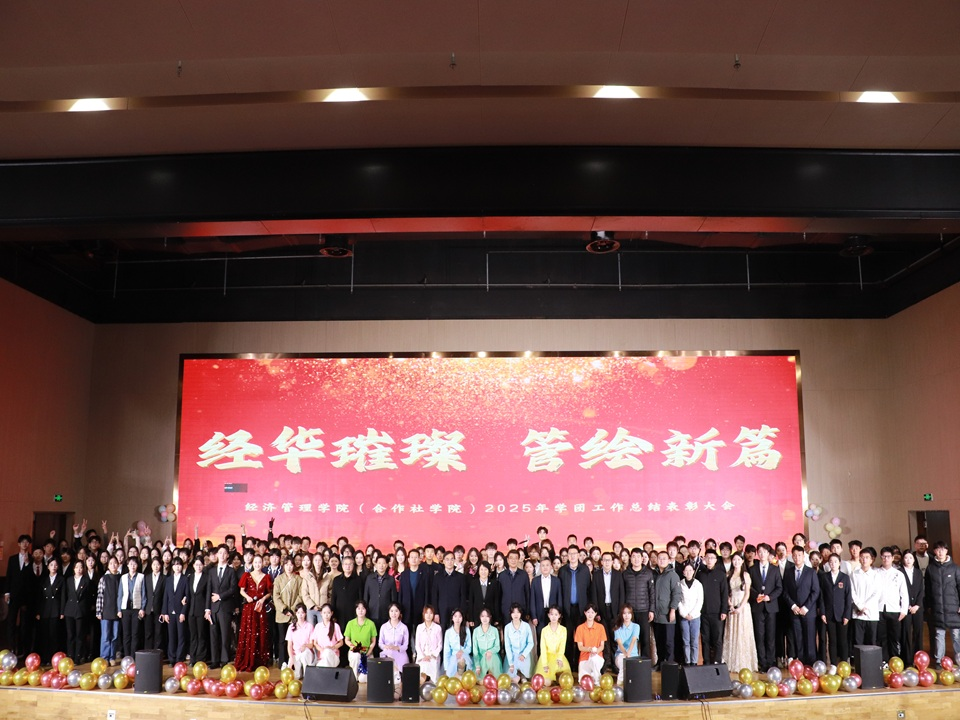 12月16日,青岛农业大学经济管理学院(合作社学院)在平度校区大学生创业中心举行“经华璀璨,管绘新篇”2025年学团工作总结表彰大会。校党委副书记刘春霞出席会议,学校相关单位负责人,学院负责人、学团工作人员和学生代表参加大会。
