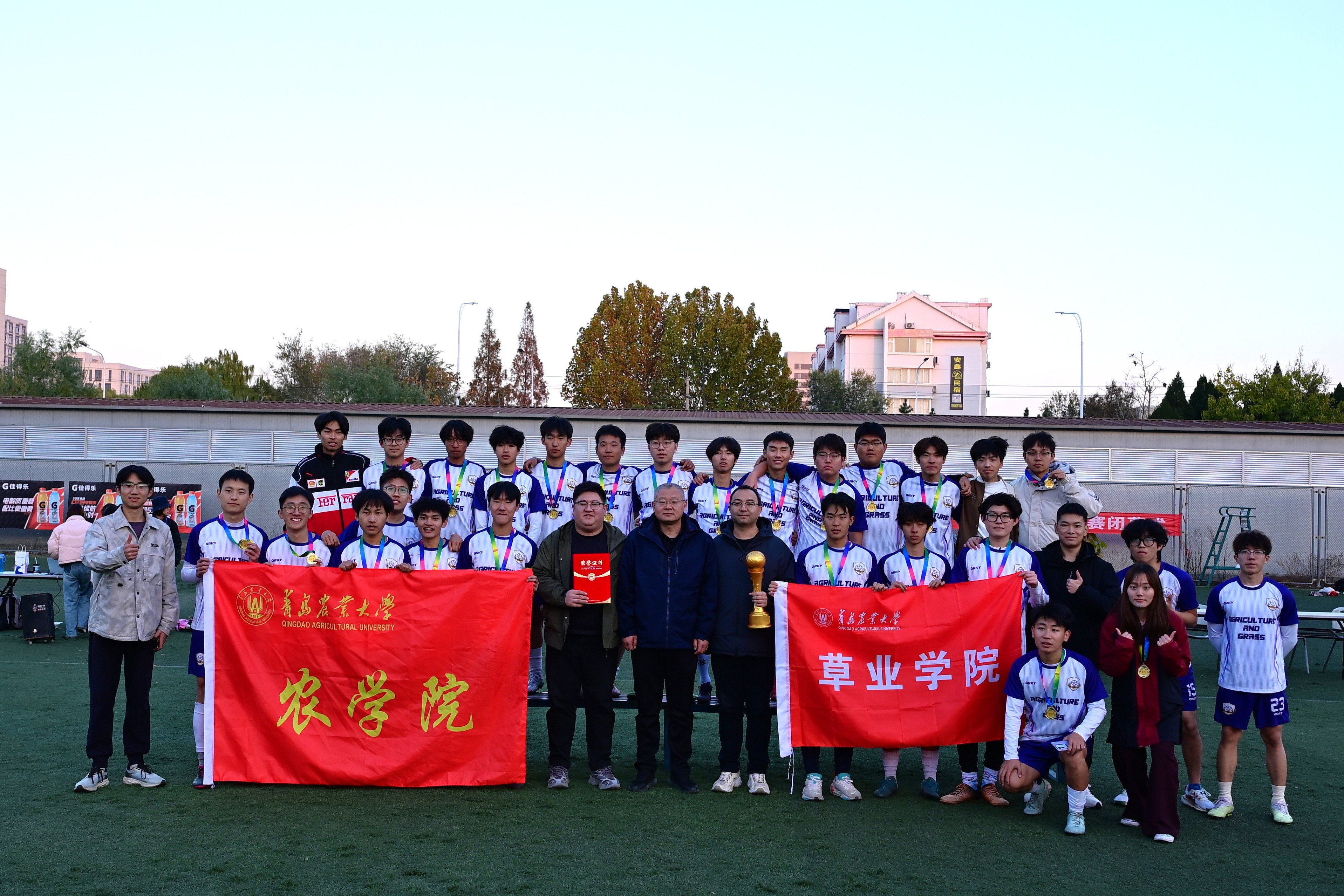 11月21日,青岛农业大学第二十一届“青农杯”足球赛决赛暨闭幕式在城阳校区东足球场举行。校团委、体育教学部、农学院、草业学院负责同志及各学院代表队参加了闭幕式。入围冠亚军争夺赛的农学院、草业学院联合代表队和机电工程学院代表队经过激烈对战,最终以农学院、草业学院联合代表队1:0获胜,夺得冠军。