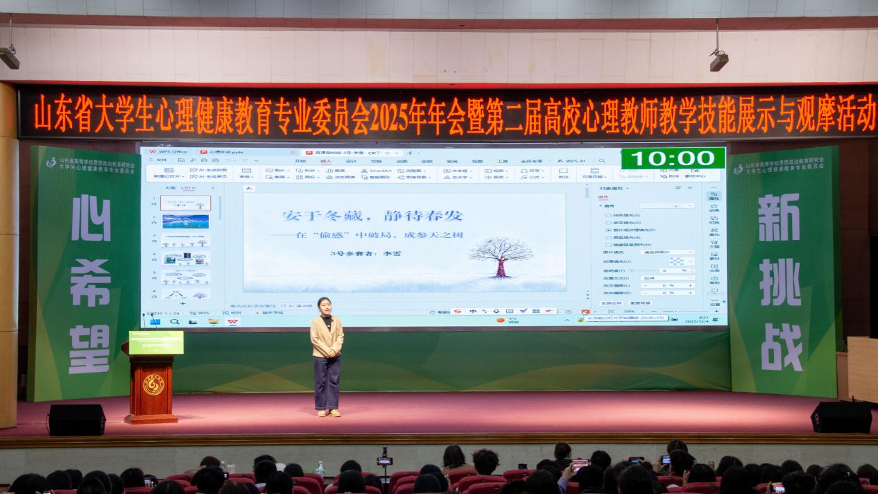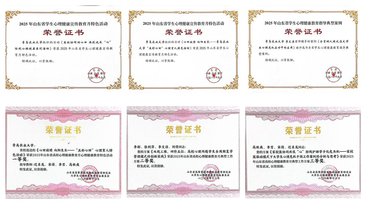 近日,山东省大学生心理健康教育专业委员会2025年年会暨第二届高校心理教师教学技能展示与观摩活动在山东理工大学举办。会上表彰了2025年山东省高校心理健康教育月优秀活动项目,学校心理健康教育工作成果荣获多项奖励。