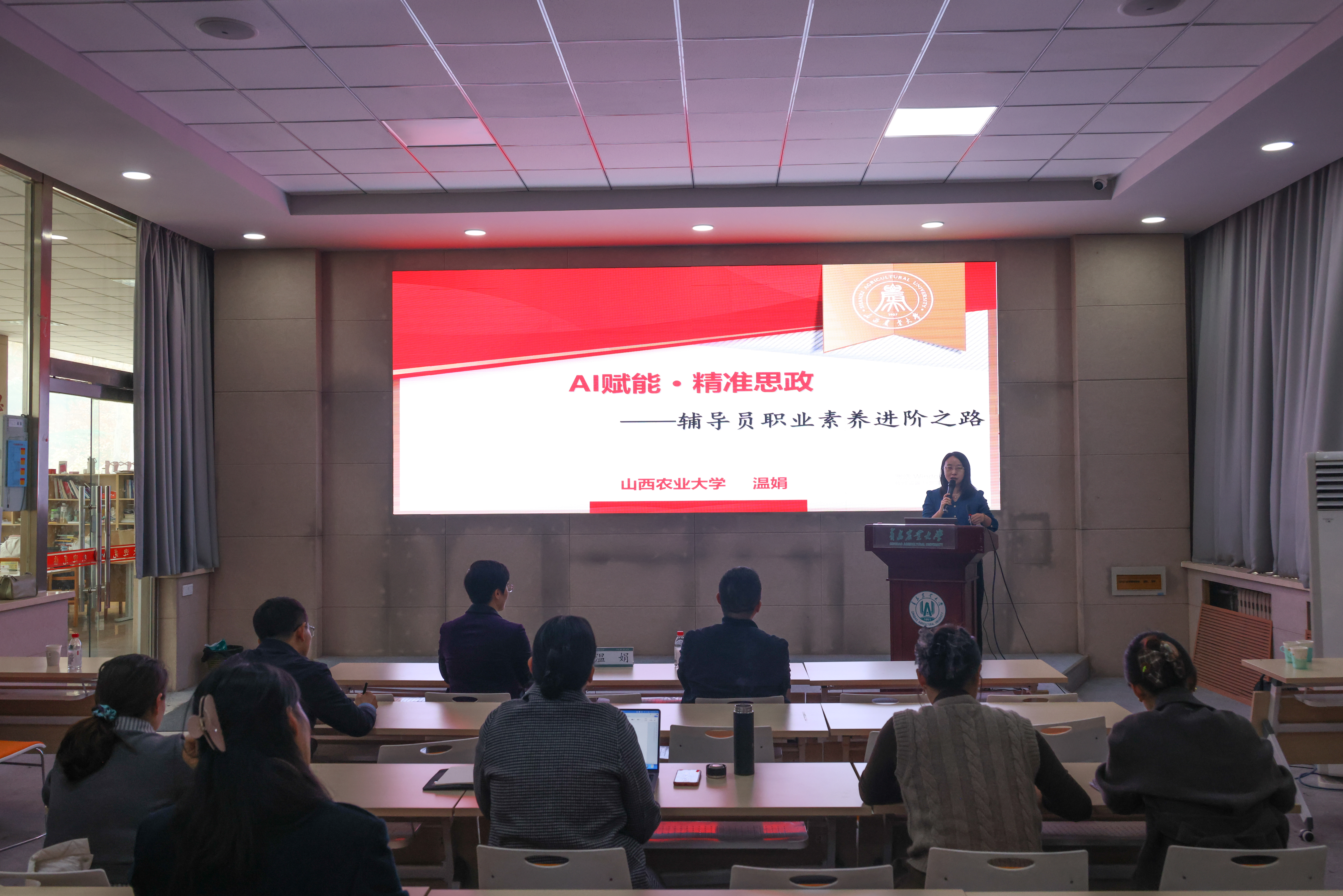 在专题报告阶段,山西农业大学学生工作部部长原广华以“铸魂育人 护航成长——如何做好高校学生工作”为题作报告。原广华从“学工现实与挑战”“辅导员能力建设”“工作成绩分享”“工作思考感悟”四个方面展开全面讲解,并结合工作实例进行深度解析。他指出学生工作要遵循常规工作有序、重点工作有力、创新工作有效的工作方法,辅导员要在职业生涯中不断追求岗位幸福感、事业成就感、社会荣誉感和家庭责任感。