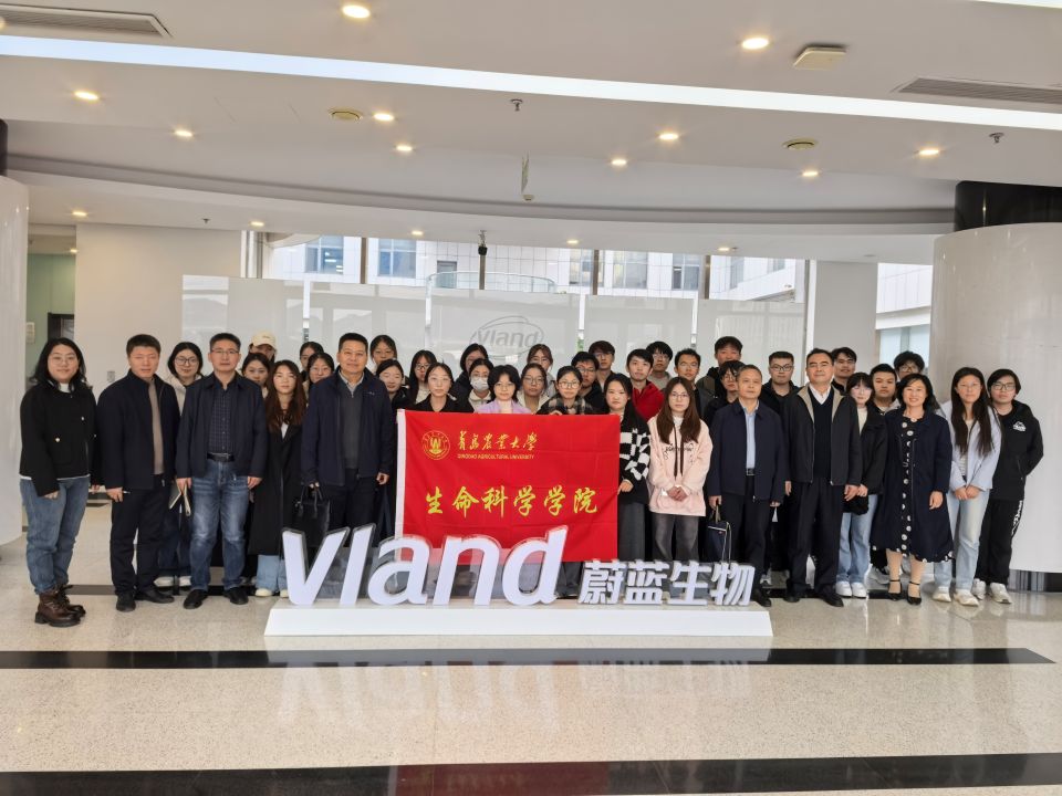 为深化校企合作,拓宽学生实习与就业渠道,推动科研成果转化与产业需求精准对接,10月29日下午,副校长郭尚敬率队赴青岛蔚蓝生物股份有限公司进行访企拓岗专项调研与座谈交流。生命科学学院相关负责人以及生科(创新)2201班全体同学共同参加了此次活动。蔚蓝生物股份有限公司党委书记安可明,首席科学家、学术带头人及科研部总经理等企业核心团队成员热情接待并参会。