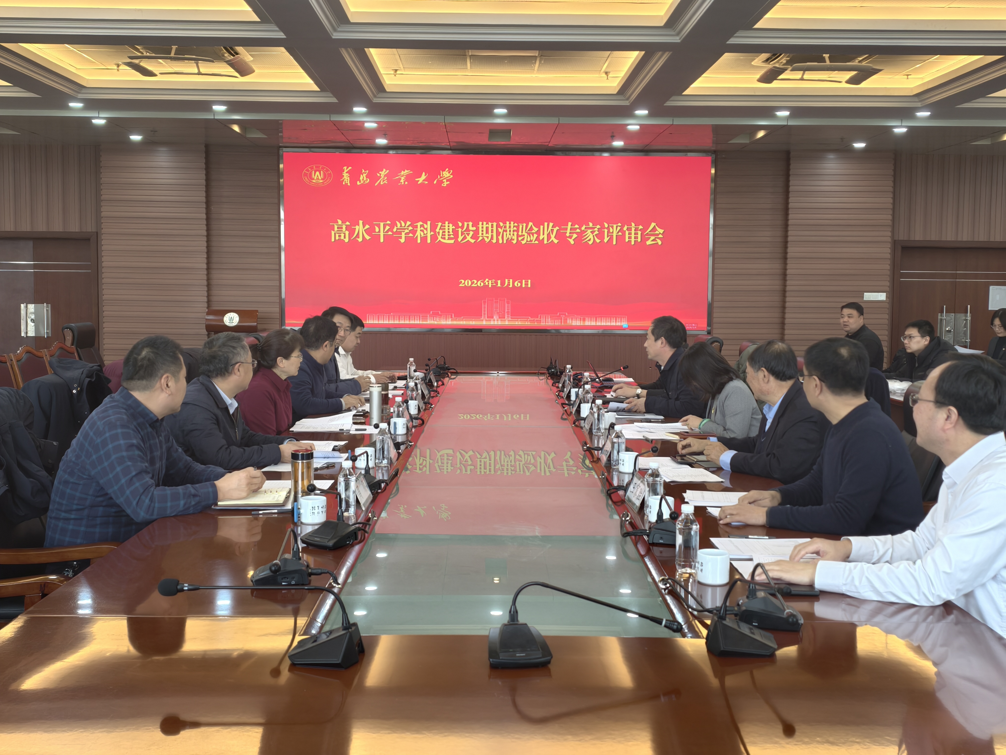 1月6 日下午,青岛农业大学在办公楼三楼会议室召开山东省高水平学科建设期满验收专家评审会,对水产、农业工程两个高水平学科五年建设成效进行全面评议。会议邀请中国农业大学韩鲁佳教授、吉林大学杨印生教授、中国海洋大学李琪教授及校内专家组成评审专家组,副校长张玉梅出席会议,发展规划与学科建设处处长宋伟主持会议。