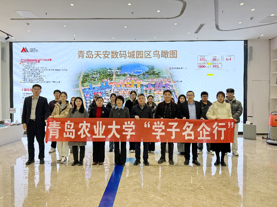 12月29日,青岛农业大学党委副书记刘春霞带领经济管理学院(合作社学院)师生开展“访企拓岗促就业”专项行动,师生一行走进青岛天安数码城园区参观考察,并与青岛红钥匙网络科技有限公司开展深度座谈交流。经管学院党委书记张德锋和2026届毕业生代表共同参加活动。天安数码城品牌运营部经理邵川、许天美,经管学院2014级优秀校友、青岛红钥匙网络科技有限公司总经理唐凯,人事总监孙晓玲,运营总监冯程程全程参加。