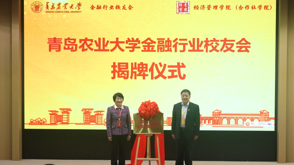 会上,刘春霞与84级校友、青岛融创惠民农业服务有限公司总经理杨明忠共同为“青岛农业大学金融行业校友会”揭牌,经济管理学院(合作社学院)党委副书记、院长李敬锁向大会详细汇报金融行业校友会的筹备情况。
