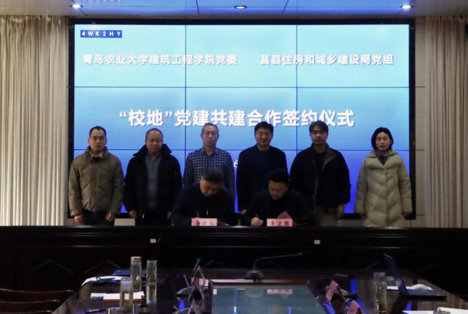 1月26日,为巩固学院与莒县的“校地”合作成果,进一步拓宽合作领域,加快党建与业务深度融合,建筑工程学院党委书记唐传成、院长全洪珠一行6人赴莒县开展“校地”产才融合发展对接交流活动暨党建共建合作签约仪式。莒县县政府党组成员、副县长,县新型建材产业链链长徐厚平出席活动并讲话,莒县住房和城乡建设局党组书记、局长李卫国主持会议,莒县住房和城乡建设局党组班子部分成员以及相关业务科室负责同志参加。