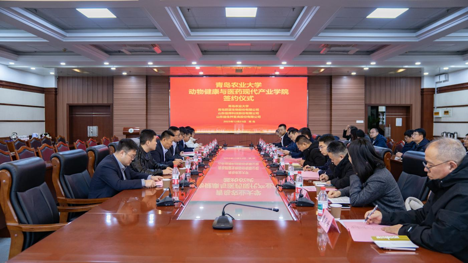 12月23日,青岛农业大学动物健康与医药现代产业学院签约仪式举行。青岛农业大学与青岛蔚蓝生物股份有限公司、山东信得科技股份有限公司、山东益生种畜禽股份有限公司正式签署合作协议,四方将携手共建动物健康与医药现代产业学院。青岛农业大学副校长隋国武出席仪式并致辞。